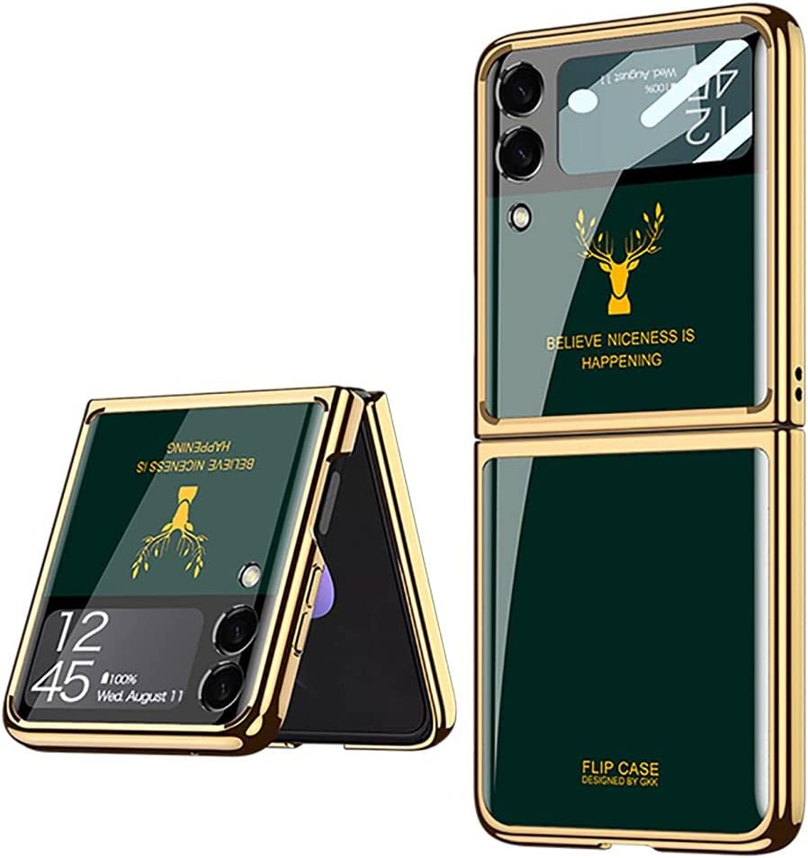 Samsung Galaxy Z Flip 3 With Glossy Green And Gold Deer Design Case
