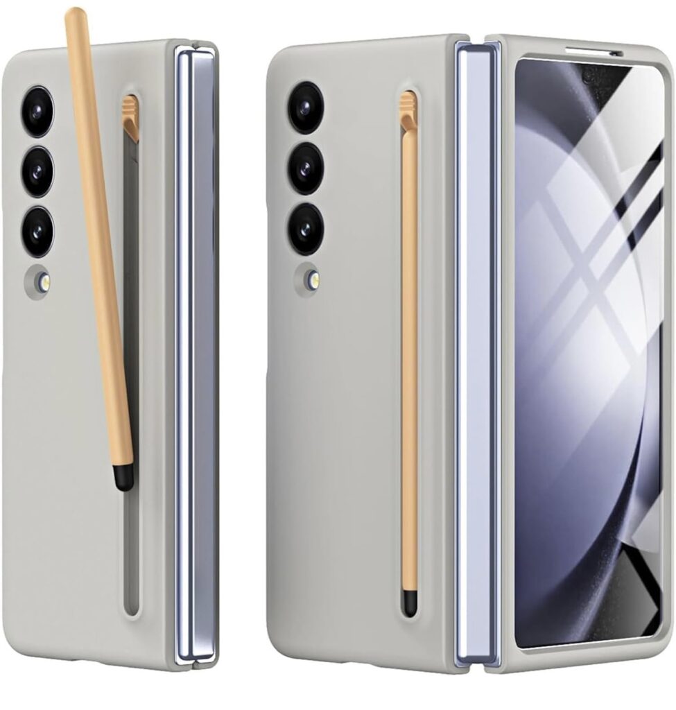 Samsung Galaxy Z Fold 3 Light Grey Silicon OG Spen Case With Inbuilt Free Orange Pen