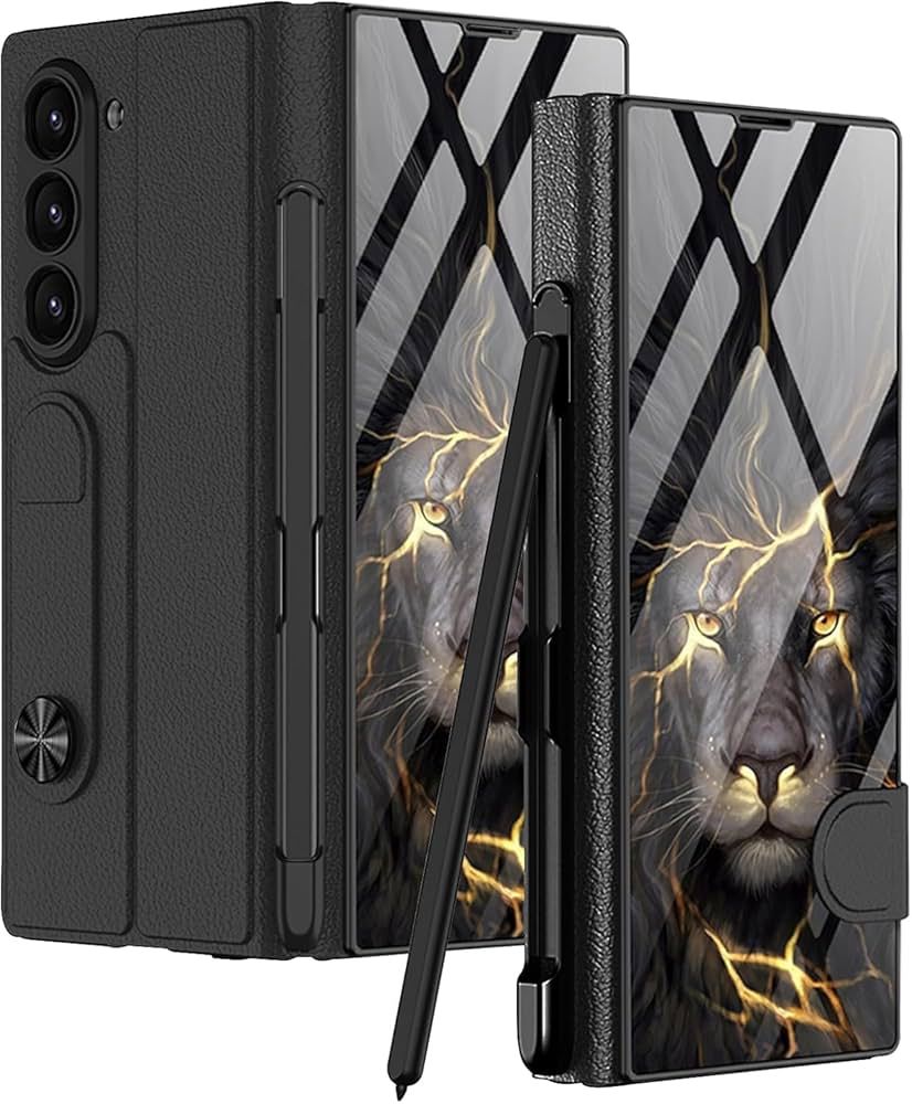 Samsung Galaxy Z Fold 6 With Glossy Black Lion Premium Flip With Inbuilt Front Screen Guard