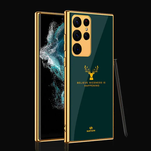 Samsung Galaxy S22 Ultra With Glossy Green And Gold Deer Design Case