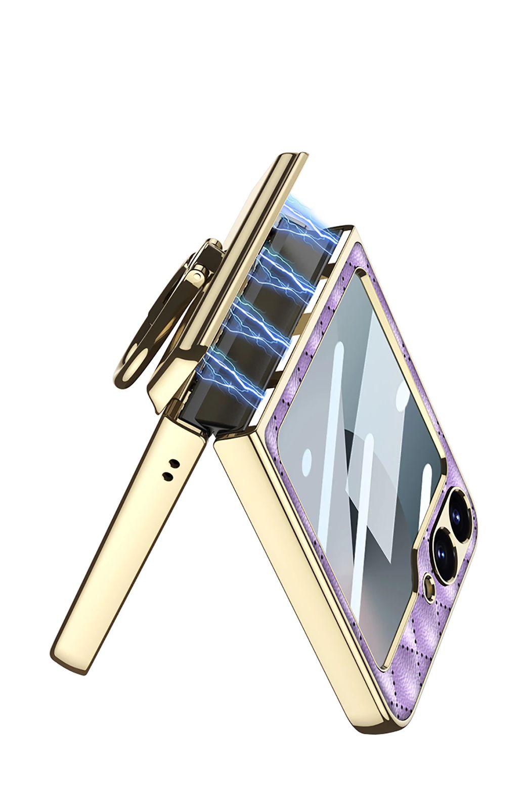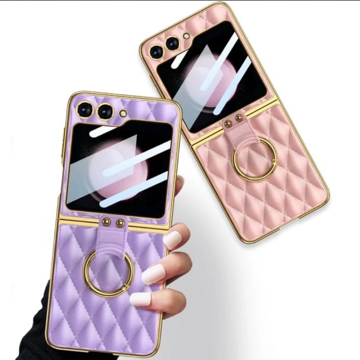 Samsung Galaxy Z Flip 6 Purple Cushion Leather Styles With Inbuilt Front Screen Guard