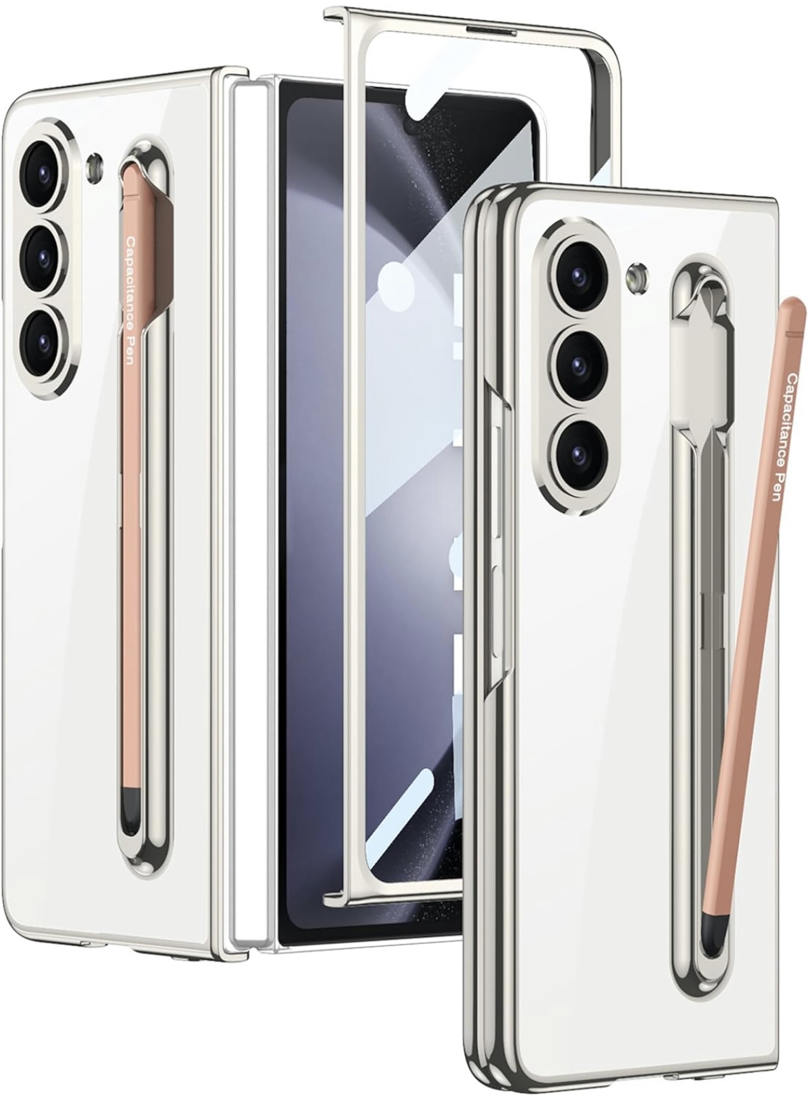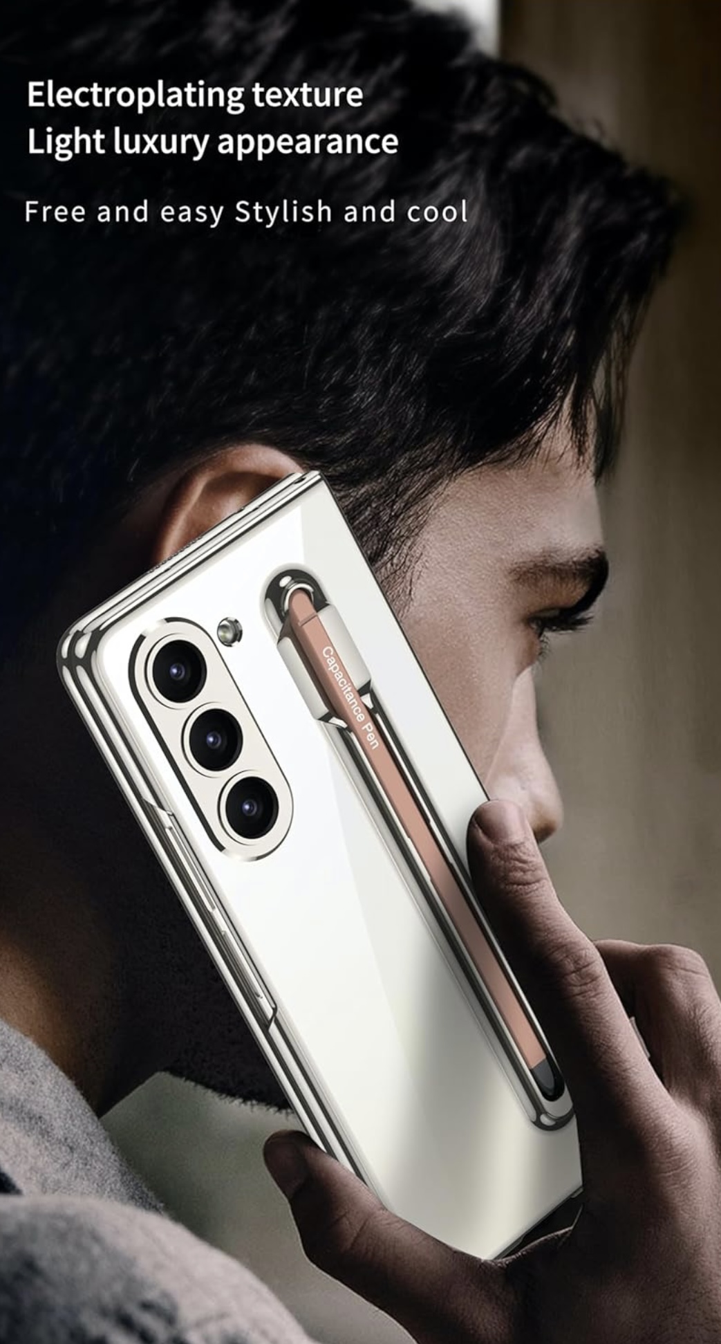 Samsung Galaxy Z Fold 5 Gold Matt With Magnetic Hinge And Inbuilt Front Screen Guard With Free Orange Pen
