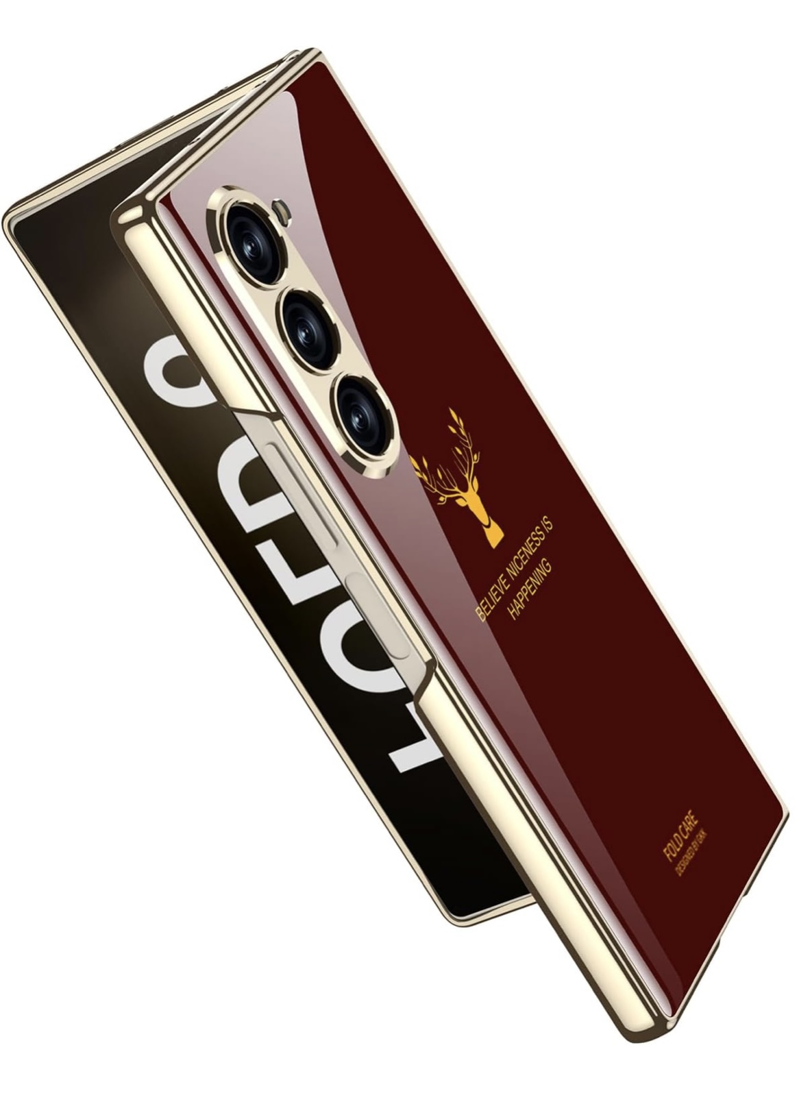 Samsung Galaxy Z Fold 6 With Glossy Maroon And Gold Deer Design Case
