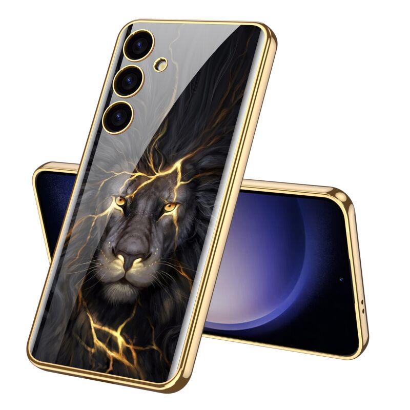Samsung Galaxy S24 Ultra With Glossy Black And Gold Lion Design Case
